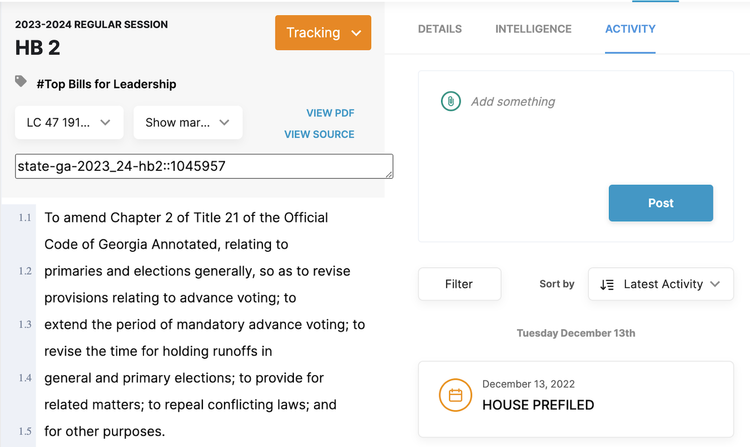 Staying on top of prefiled bills increases your awareness of top priorities for legislators heading into session and grants you extra time to organize your team so that you can prepare to act on a piece of legislation from day one.