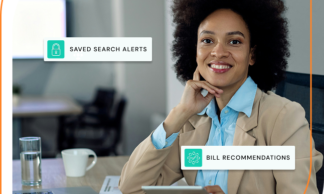 - Policy Staff would benefit from turning on saved search emails at a daily cadence. This would allow them to log on each day with a list of bills to analyze to determine whether they fit into a client’s legislative interests. Bill update notifications would be less important to this group as they are primarily interested in bill discovery.