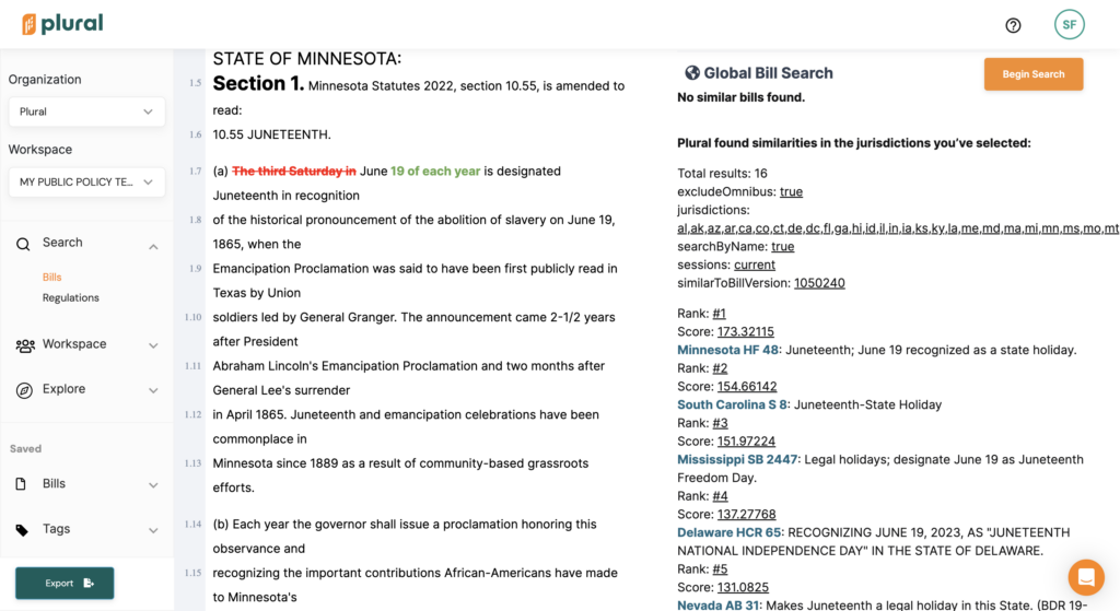 In the world of public policy, success is all about finding what you need, when you need it. Plural’s powerful data and search capabilities make it the superior legislative tracking tool.