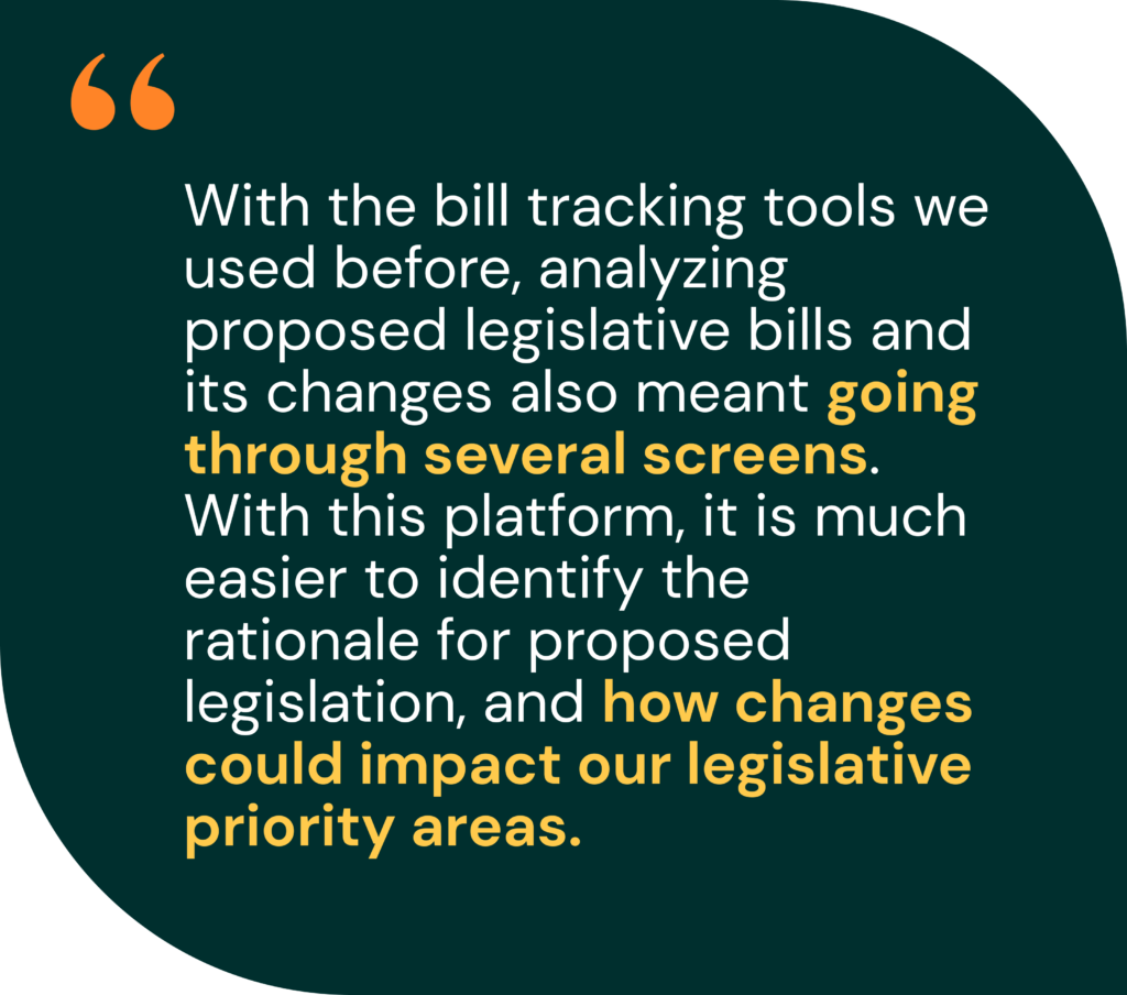 For years, spreadsheets have been the go-to solution for tracking legislative changes. They are familiar and versatile but come with limitations that can impede efficiency. Tracking bills with spreadsheets often involves manual updates, sifting through multiple screens to analyze bills, and a constant battle to maintain accuracy and timeliness. The same is true with legacy legislative tracking tools.