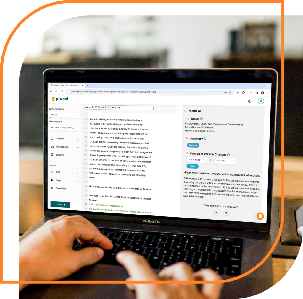 Plural is the legislative tracking tool of choice for policy teams monitoring issues related to education. With Plural, you’ll: