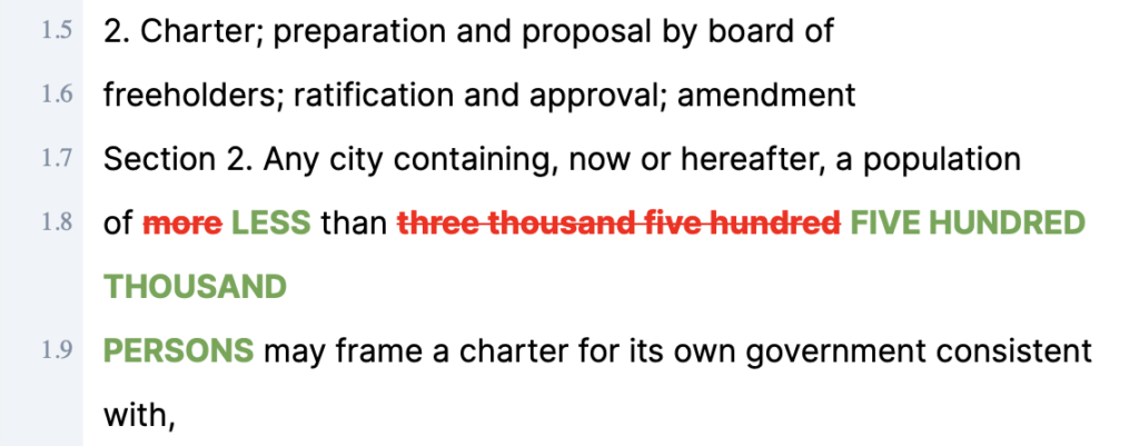 The nature of public policy itself also contributes to the challenges around AI. Nuance and consensus are often hard to find in the political realm. Legislation can also be long and full of legal jargon and technicalities. Words can have many meanings — simple changes can alter the legal interpretation. Arizona SCR 1023 is a good example of how small changes can significantly affect the meaning of the law. Here’s a short paragraph changing the requirements to build a charter: