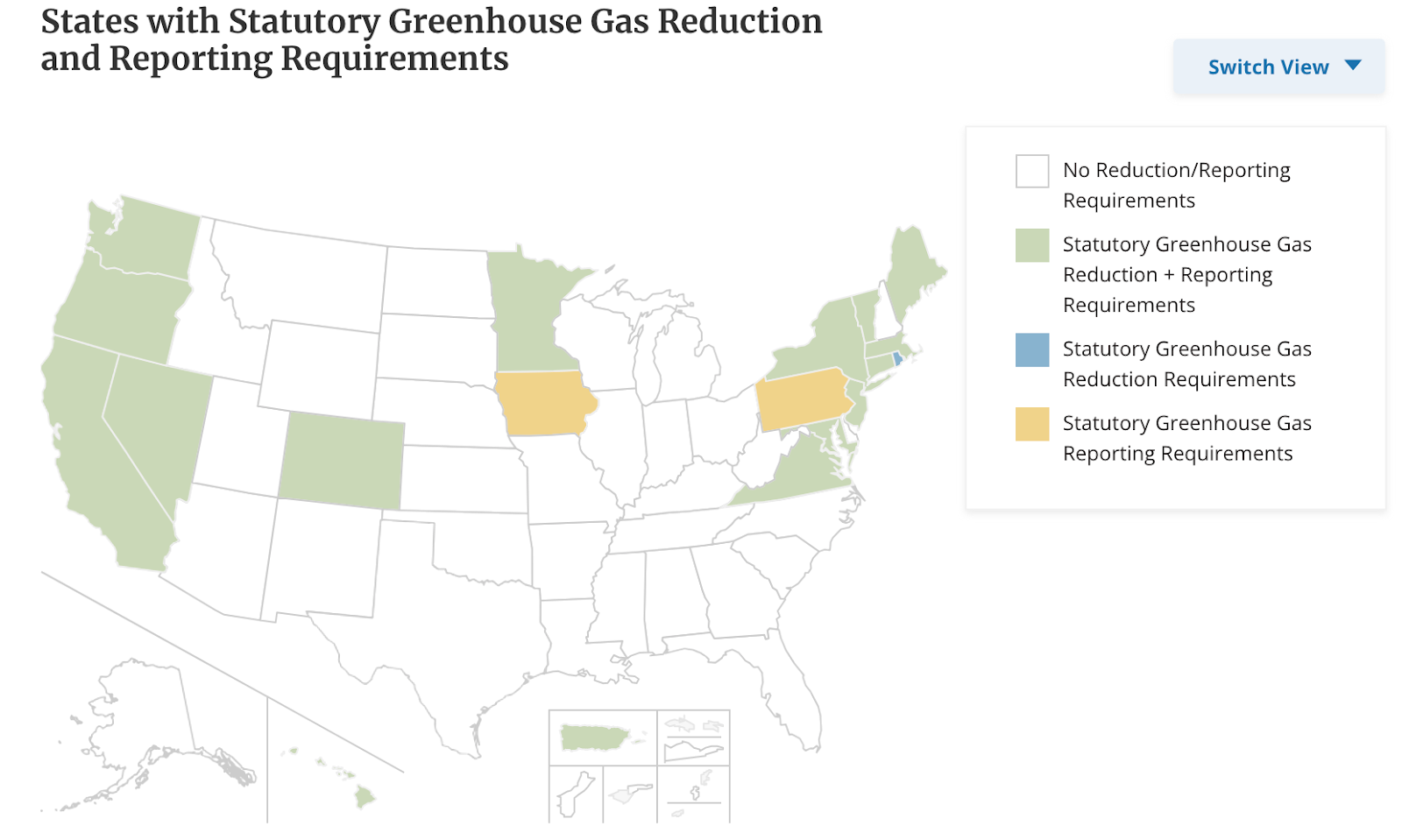 Since 2020, many state legislatures have enacted emissions reductions targets. This movement represents one of the most successful trends in climate policy thus far. At least sixteen states and Puerto Rico have passed greenhouse gas reduction targets.