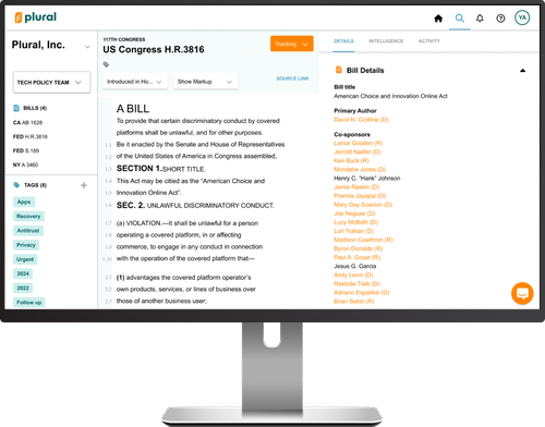 We help you shape public policy so you can shape the future. Search, track, and collaborate on bills that matter most. That’s the power of Plural.