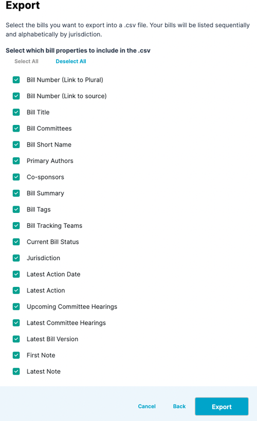 Need to do more complex and in-depth analysis on a group of dozens, hundreds or even thousands of bills? Need to convert raw data into charts and graphs? You can easily export your data from Plural into a .csv file to conduct further analysis and data configuration as needed.