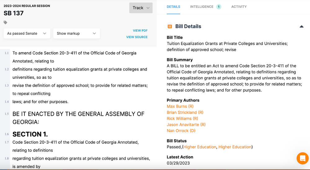 Plural’s best-in-class data makes it easy to find information about any bill that’s been introduced in the most current and recent sessions of all 50 U.S state legislatures, the U.S. Congress, Puerto Rico and the District of Columbia. In addition to providing full bill text complete with line numbers, Plural’s bill detail pages include the bill’s number and title, author and co-sponsor, originating committee information and a summary of key actions that were taken on the bill.