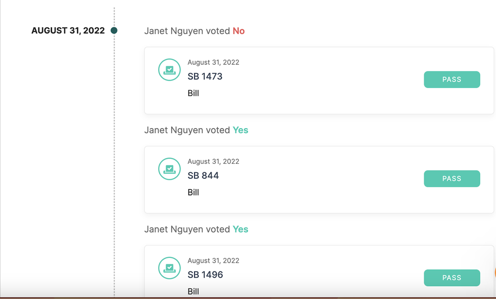 Plural also provides vote data by individual legislator or bill, which means you can easily confirm pass/fail votes on your bills of interest and dig into how your legislators of interest voted on key bills.