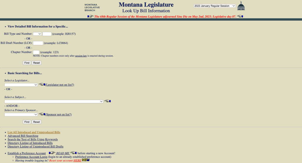 For instance, let’s take a look at the Montana Legislature’s website.
