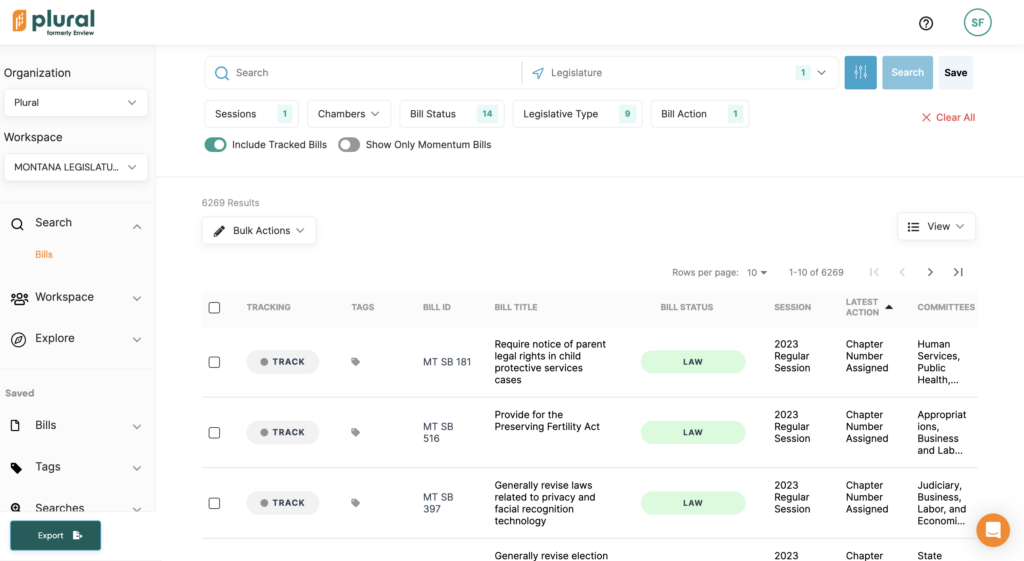 - With Plural, it’s easier than ever to organize complicated public policy work. Bills can be organized or tagged, and users can track bills and receive notifications as bills continue through the legislative process.