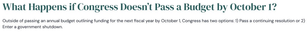Congress has failed to pass the dozen annual appropriations bills that make up the federal budget. Progress has stalled on passing a continuing resolution (CR) that would grant them more time to do so. That means that lawmakers are barreling towards a government shutdown.