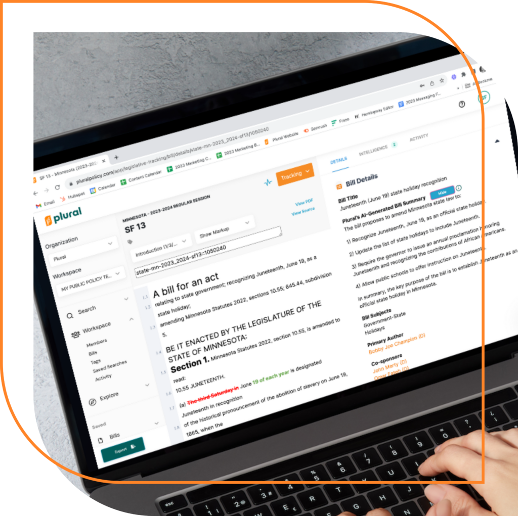 Plus, soon, Plural will help you discover bill topics and version-to-version bill summaries with the power of AI. With Plural, you’ll never miss an opportunity to influence legislation.