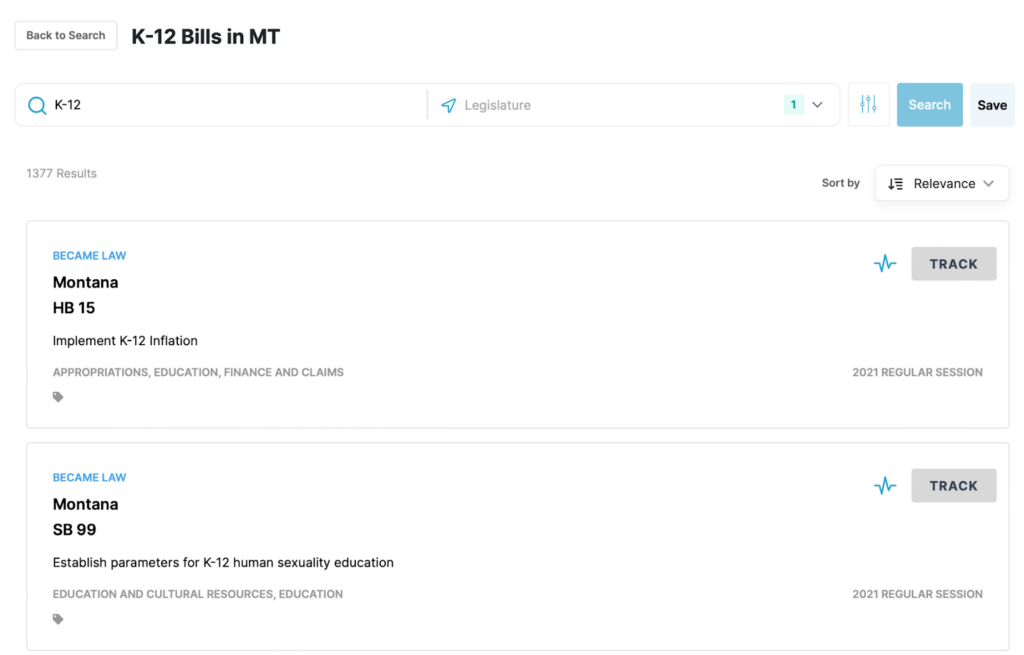 All saved searches are dynamic, so they’ll get updated as new legislative data becomes available. For example, as legislatures introduce new bills that match your saved search criteria, those bills will appear as results.