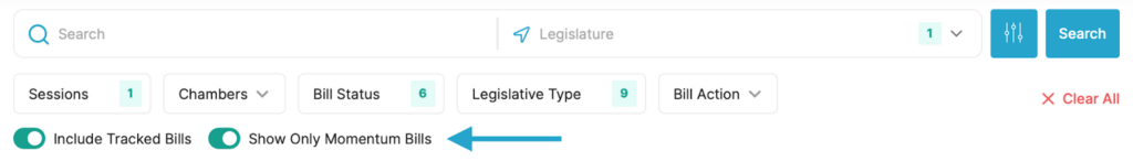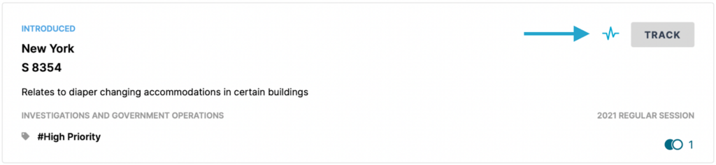 Bills with potential momentum will have a pulse icon next to the “Track” button and on their bill page.