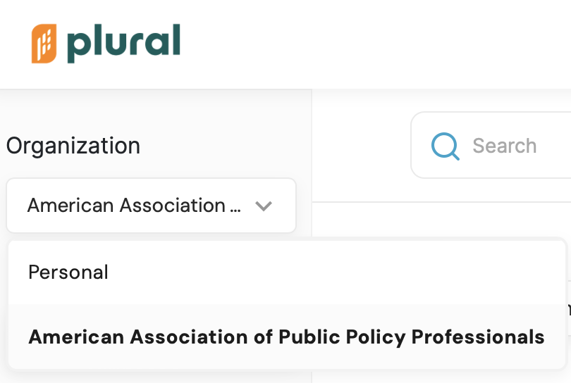 Plural allows you to have a personal organization, in addition to your shared organization. In your shared organization, you can collaborate with colleagues on work. Your personal organization is for your own work and is not shared with others.