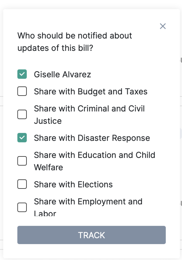 Tracking a bill in Plural allows you to keep a running list of all of your bills of interest in a single place. You’ll receive email alerts whenever there’s an update on any of your tracked bills.